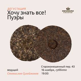 Пуэры, одна из самых богатых, интересных, современных и одновременно древних видов чая. Чай про который слагают легенды, сочиняют сказки и байки, чай который наделяют особыми свойствами – как лекарственными так и настроенческими, физическими и волшебными. Что такое пуэр? какой он бывает? зачем и для чего чай пуэр? Как его правильно заварить и хранить, а главное – как понять и полюбить, вы сможете узнать в ближайшую субботу на нашем традиционном чайном вечере, где мы попробуем 4 вида пуэра в самом его разнообразии.