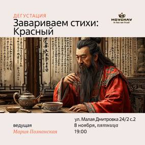 Во время пятничного чаепития в клубе чайной культуры на Малой Дмитровке продегустируем три красных чая, а также прикоснемся к легендам и стихам, сопутствующим традиции и атмосфере вечера.
