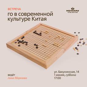 Дорогие друзья, первая летняя го-встреча будет необычной, мы поговорим о роли игры Го (Вэйцы) в современной культуре Китая, ее отражении в новеллах и дорамах. Вэйцы является значительной частью философии и культуры Китая, упоминания о ней можно встретить как в древних классических трактатах Конфуция, так и в современных литературных произведениях. Даже если игра не упоминается прямо, ее философия лежит в основе многих китайских новелл. Лекция подходит для всех интересующихся культурой Китая, как для начинающих, так и для любителей, уже знакомых с игрой. После лекции будет практическая часть, в которой можно будет применить философские принципы Го на практике в игре на учебных досках 9*9 и 13*13 или на классической 19*19 для продолжающих