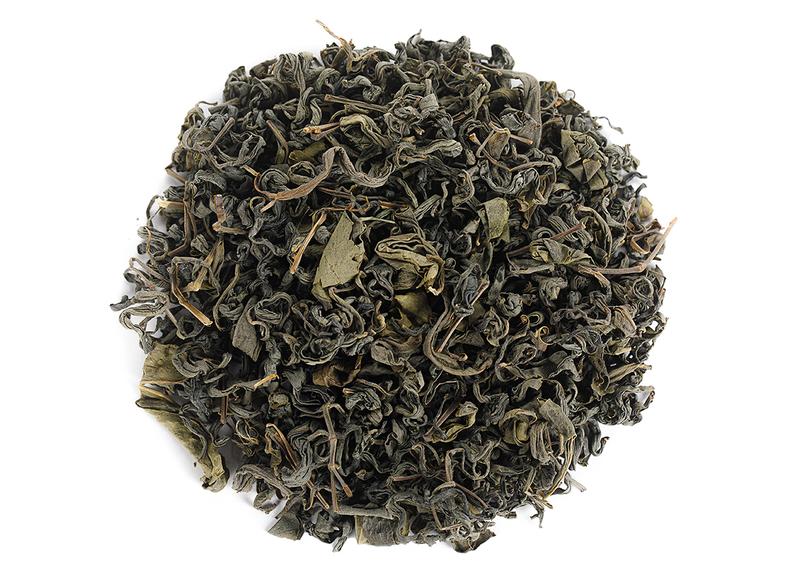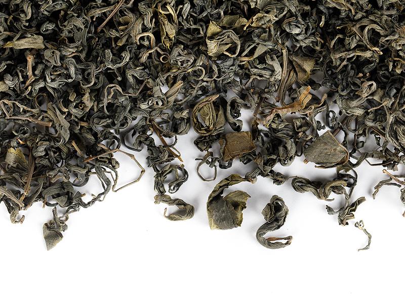 В сухом виде: небольшие скрученные жгутики листьев примерно однородного цвета, с черешками.