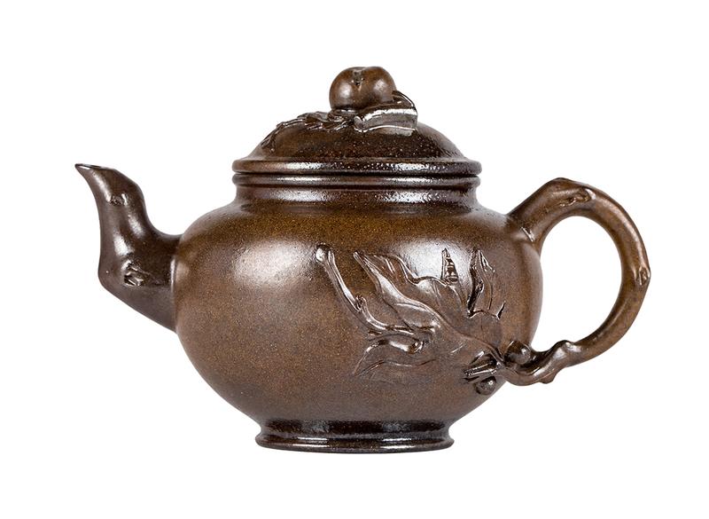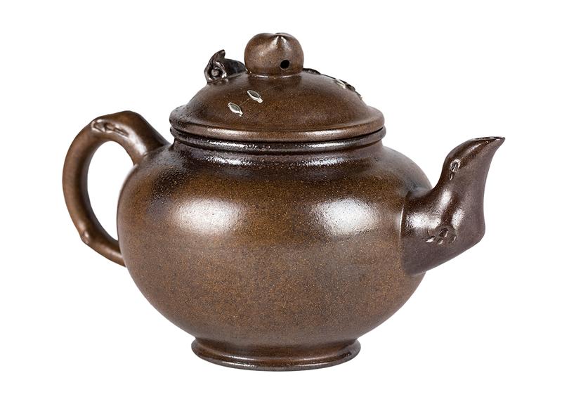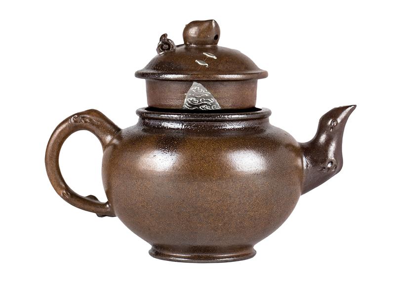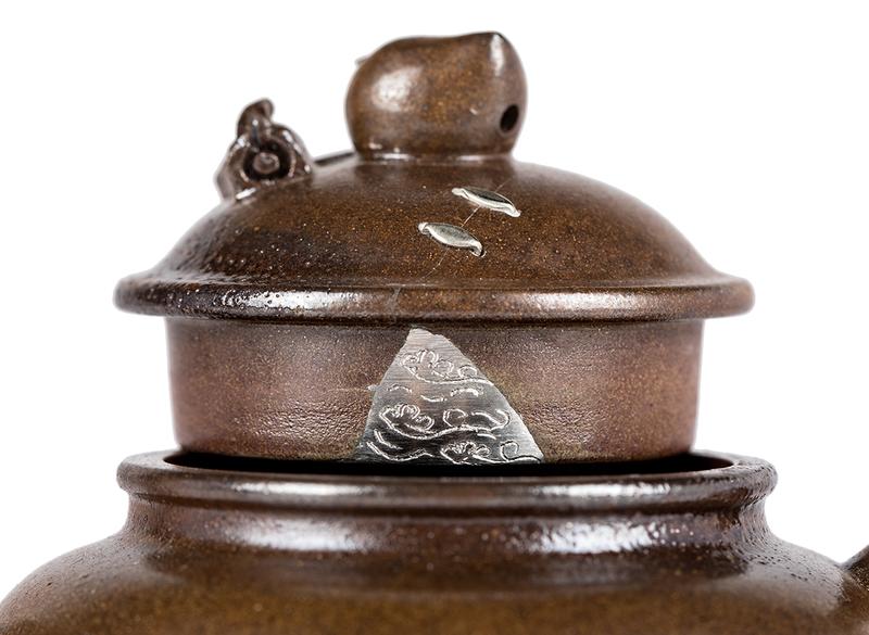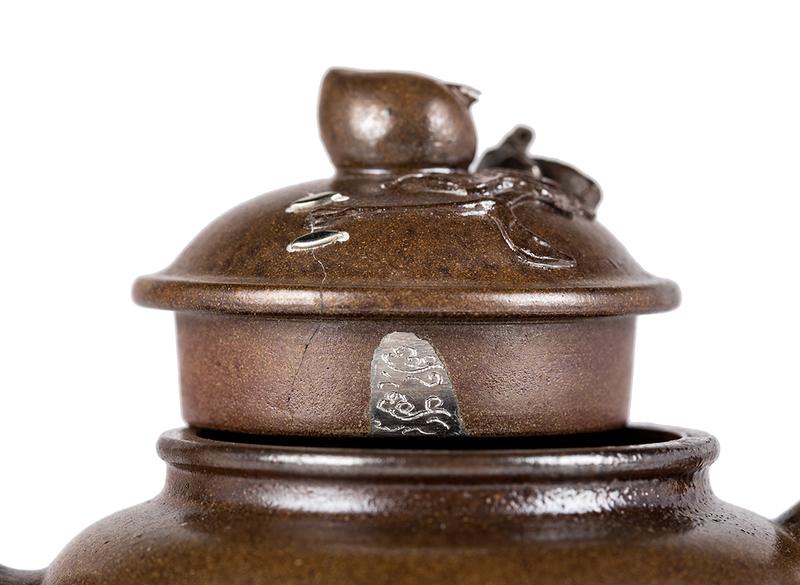 Изготовлен из окаменелой исинской глины куанляо, сырьё из горы Хуанлуншань. Полностью ручная работа. Технология кинцуги исполнена в виде серебряных скоб на крышке чайника.